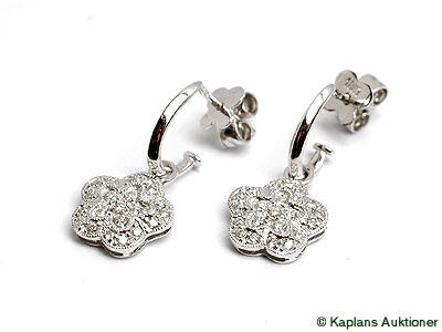 EARRINGS, 18K white gold, 38 brilliant-cut diamonds tot approx 0,35 ct approx W(H)/SI-P, weight 3,3 g, pushback