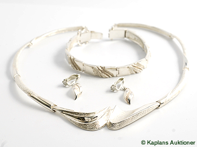 SILVER JEWELRY, 3 pcs; necklace, bracelet and earrings (clips), length 41 cm and 18,3 cm respectively.