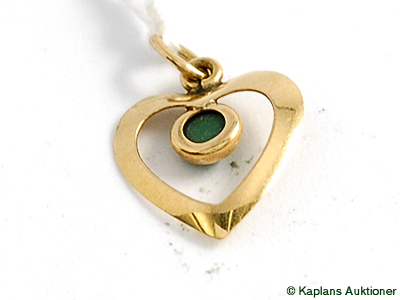 1 pendant "heart" with green stone, 18K. weight 0,6g