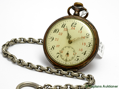 1 pocketwatch Simon PWC, repa in crystal, smutsig dial, silver with watchchain Nickel