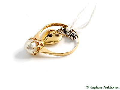 Ring, with pearl Ø17, 2 Pendant 18K 3,0 g
