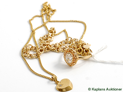 Necklace, "curb" 42cm, Pendant, Bracelet Bismarck 19cm, Ring with stone Ø17, 18K 15,9 g