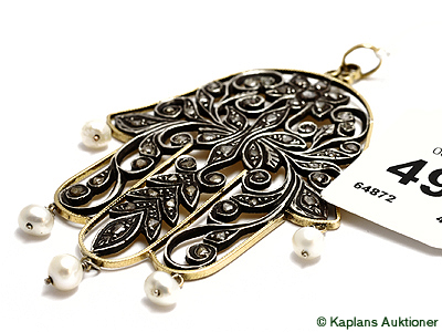 pendant with pearls and rosediamonds. 18K. weight 26,1g