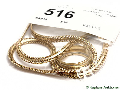 chain (hår, bucklor), 2 rings. 18K. weight 17,2g