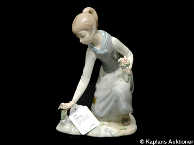 Figure, porcelain, Lladro, girl with blommor, några imperfect blommor, h 20.