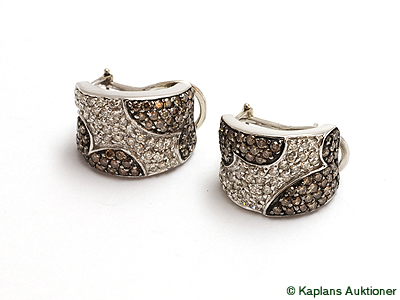 EARRINGS, 14K white gold, brilliant-cut diamonds approx 0,80 ctw approx J(CR)/VS-SI, brown diamonds approx 1,10 ctw, pushback, weight 11,6 g.