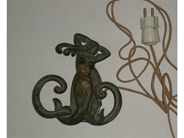 Wall lamp, bronze, 1920/30 century, mermaid with dolphin and waves. Crystal missing. Height: 18 cm.