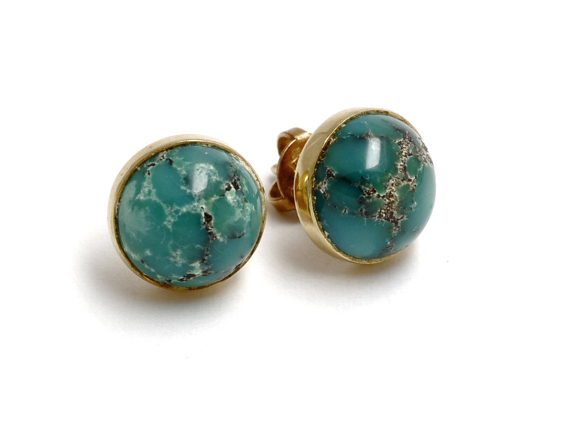 EARRINGS, 18K gold, turkosgrön stone, weight 4 g, pushback.