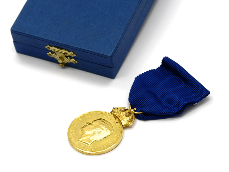 MEDAL, 23K / 18K gold, Litteris Et Artibus, 1976, proveniens Povel Ramel, by C.F.Carlman AB, weight 31,8 g, case.