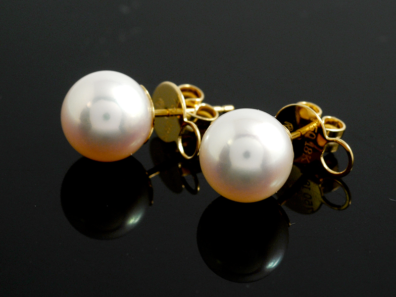 EARRINGS, 18K gold with cultured fresh-waterpearls 9,5 mm, pushback