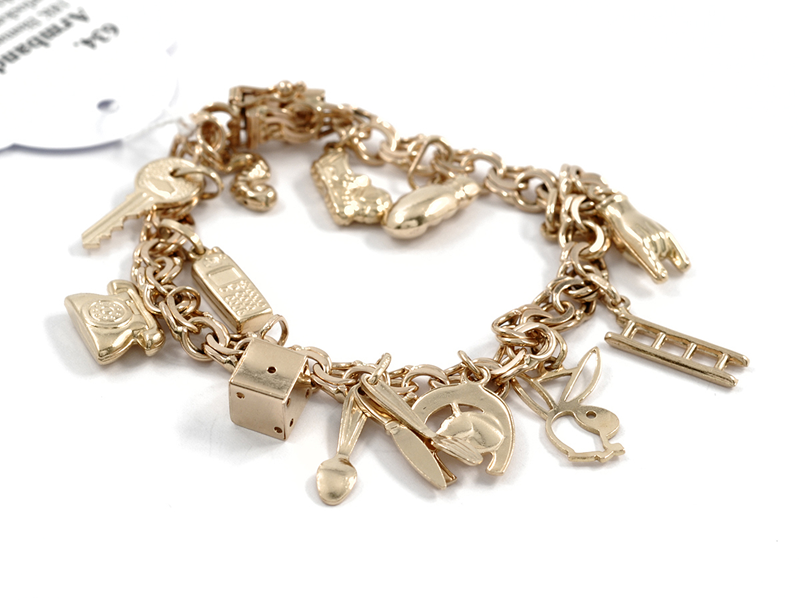 Bracelet, 18K Bismarck with charms, 1 charm imperfect, 19cm 29,0g