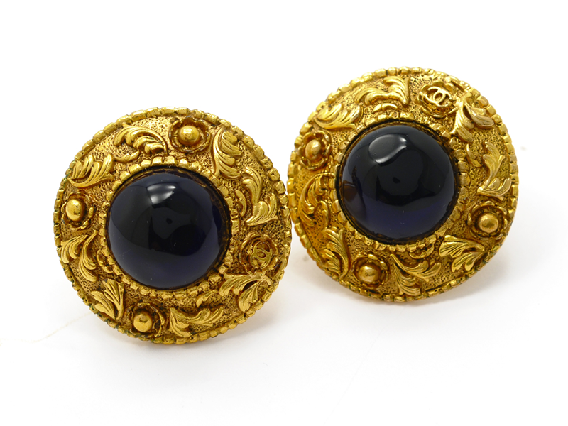 EARRINGS, CHANEL base-metal/blue stone 3,5 cm case