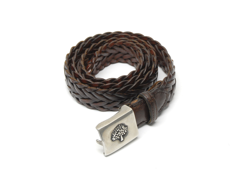 SKÄRP, MULBERRY mörkbrunt flätat leather 95 cm vitmetallspänne