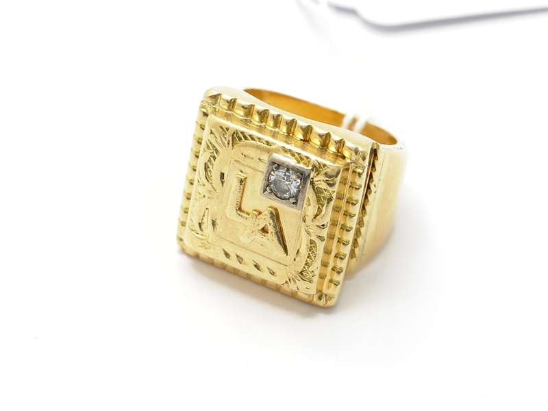 Signet-ring, with monogram and diamond 1x approx 0,28ct Ø20 14K 47,9g
