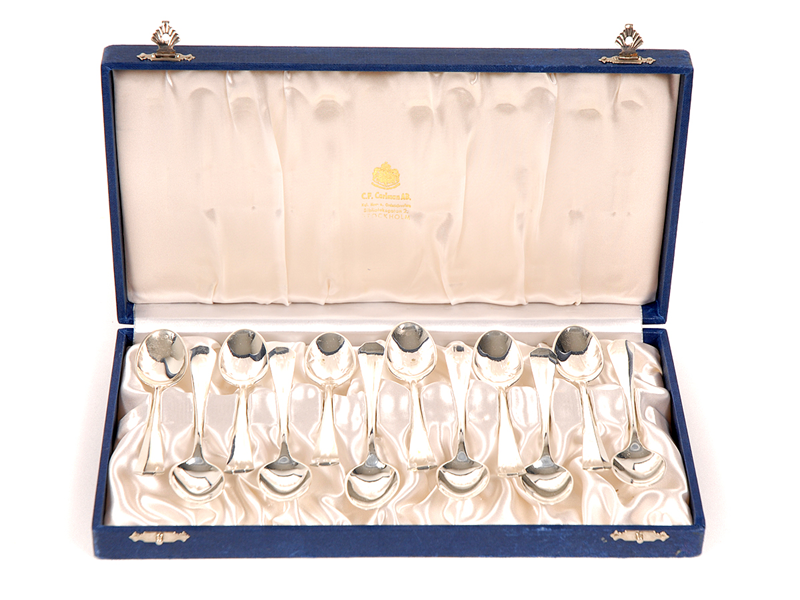 Spoons, 12st Coffeespoons in silver 105mm, marked C.F.Carlman in case