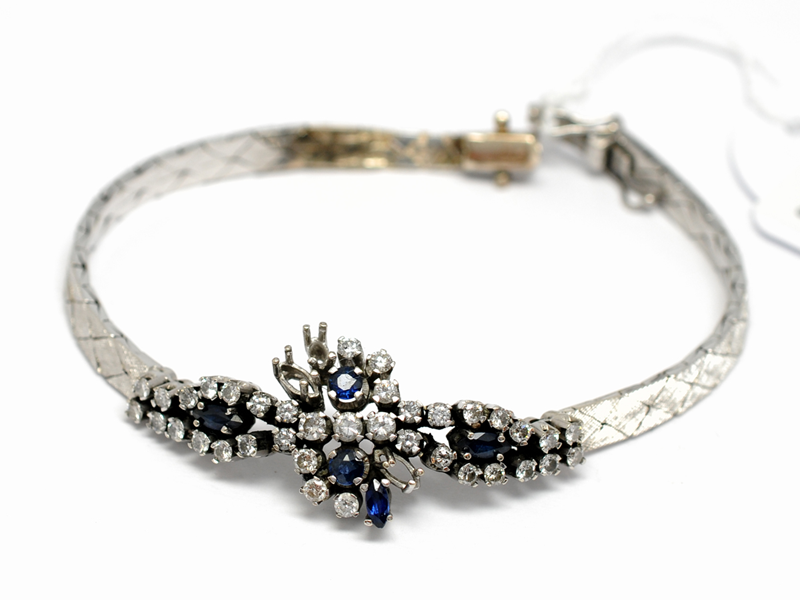 Bracelet, 14K white gold with blue stones and diamonds 34xca0,04ct, 3xca0,08ct, inneslutningar and damages, 3 stones missing 22,3g