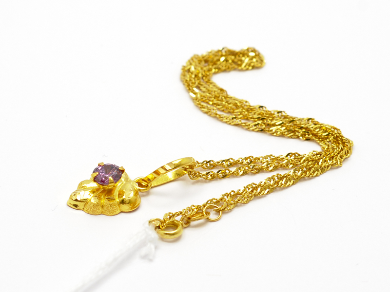 Necklace, 38cm, Pendant with purple stone 21K 4,8g