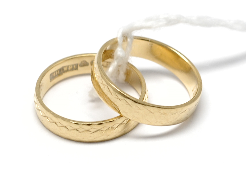 Rings, 2 Plain rings 18K engraving 5,9 g