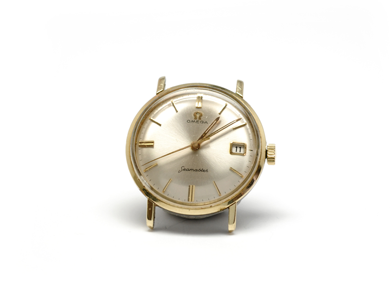 OMEGA, Seamaster, Cal 610, Serial no. 17842911, Ref no. COW 14775, Case no. 14775 2 SC, men´s wristwatch, 34,5 mm, gold on steel, manual, plexglas, date, damaged dial, engraving, approx 1960.