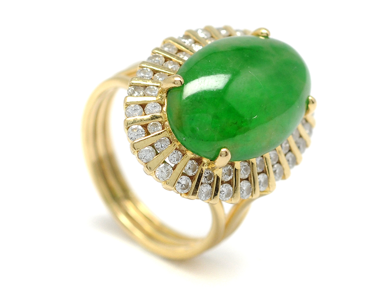 RING, 18K gold, cabochon-cut treated jade, 52 brilliant-cut diamonds approx 0,90 ctw, approx W/VS-SI, ringsize 16 mm, weight 8,8 g.