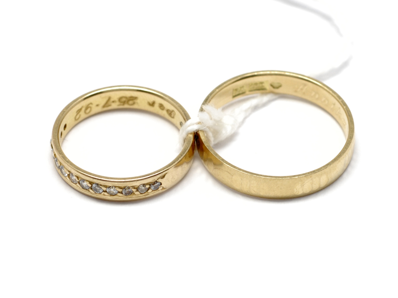 Lot of gold, 18K with engraving, with diamonds 13 x approx 0,02ct 7,5g