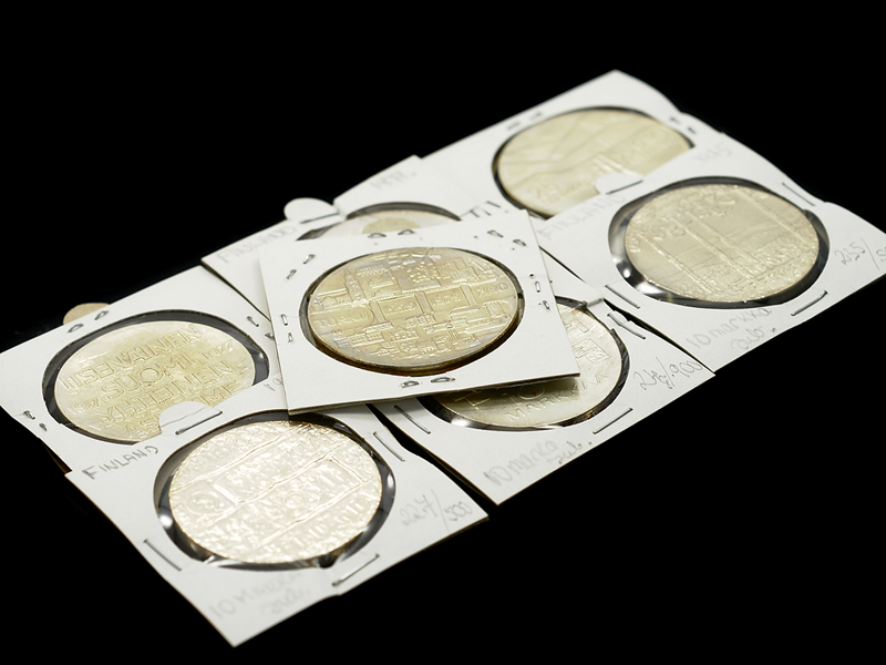 7 COMMEMORATIVE COIN, silver, 2 st 25 Markkaa 1978 and 1979, 5 st 10 Markkaa, 1967, 1970, 1971, 1975 and 1977, Finland, quality approx 0-01, total weight approx 168 g.
