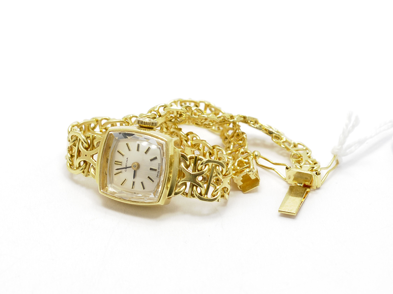 Ladie´s wristwatch, Certina, manual, "x-link" with bar, 18K in bracelet and boett,19cm gross weight 20,4g