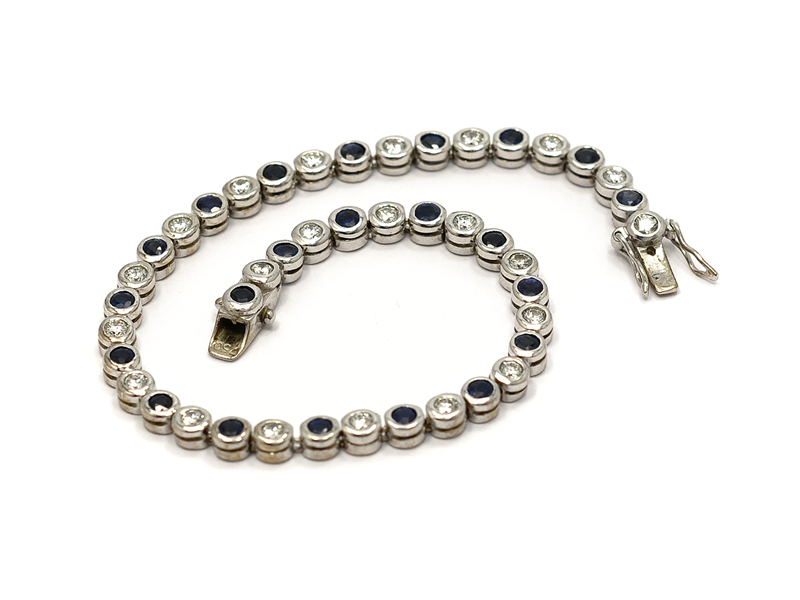 BRACELET, 18K white gold, 22 brilliant-cut diamonds approx 1,10 ctw, approx W-TCr/VS, 22 sapphires, length 18 cm, weight 12,9 g.