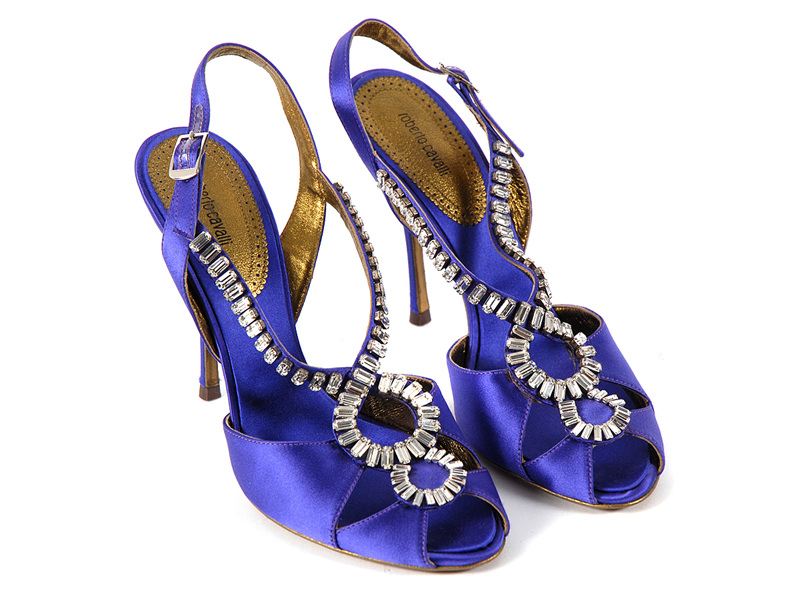 SHOES, ROBERTO CAVALLI purple satin, paste heel 11 cm, size 40.