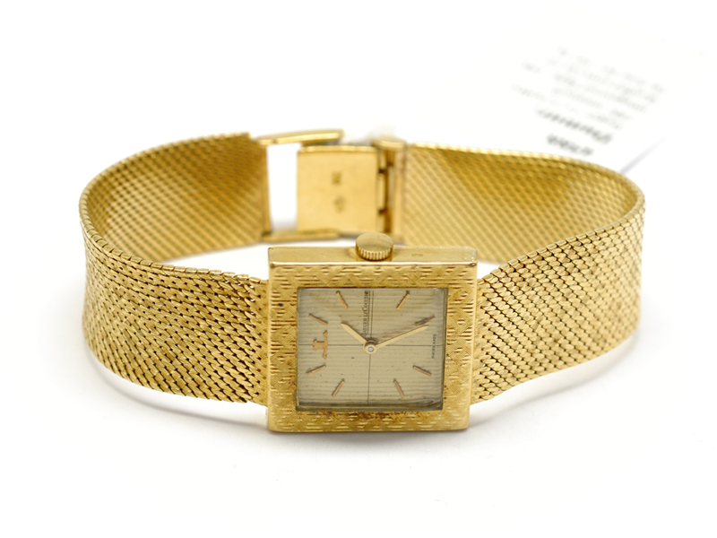 Ladie´s wristwatch, Jaeger Le Coultre, 18K manual winding integrated bracelet 18K damaged dial tot 18,5cm brv 60,1g