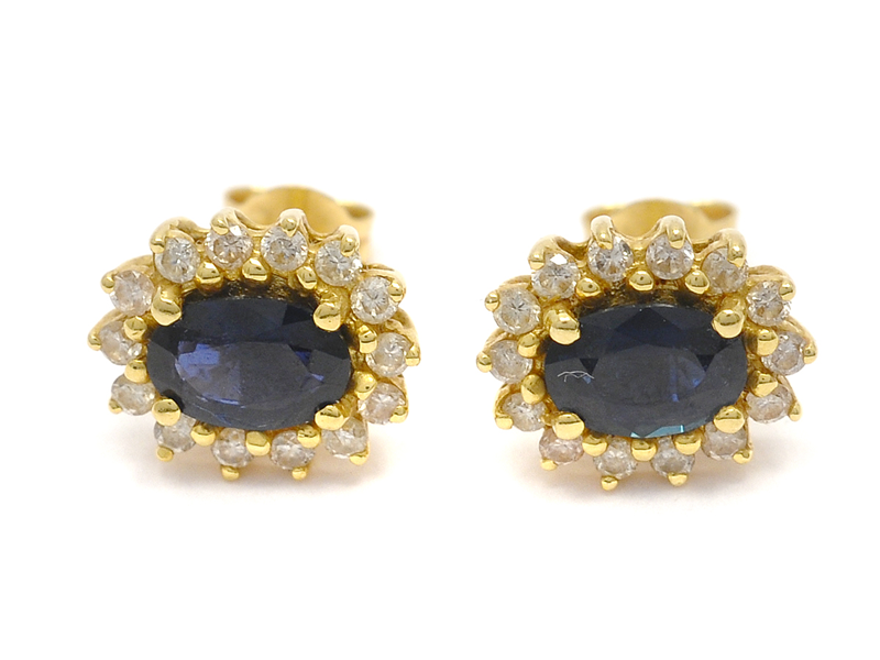 EARRINGS, 18K gold, sapphires, 28 brilliant cut diamonds approx 0,35 ctw, pushback, weight 3,6 g.