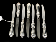 Flatware, Silver 830/1000 Olga GAB 7 Table knives 210mm 7 Table forks 180mm 7 Table spoons 180mm 1 Dessertspoon 160mm 1 Coffee spoon 122mm in casket