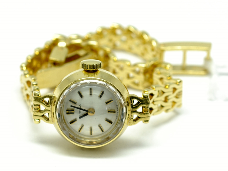 Ladie´s wristwatch, Certina 18K with integrated bracelet 18K 16,5cm, manual winding, no 719566, gross weight 25,9g