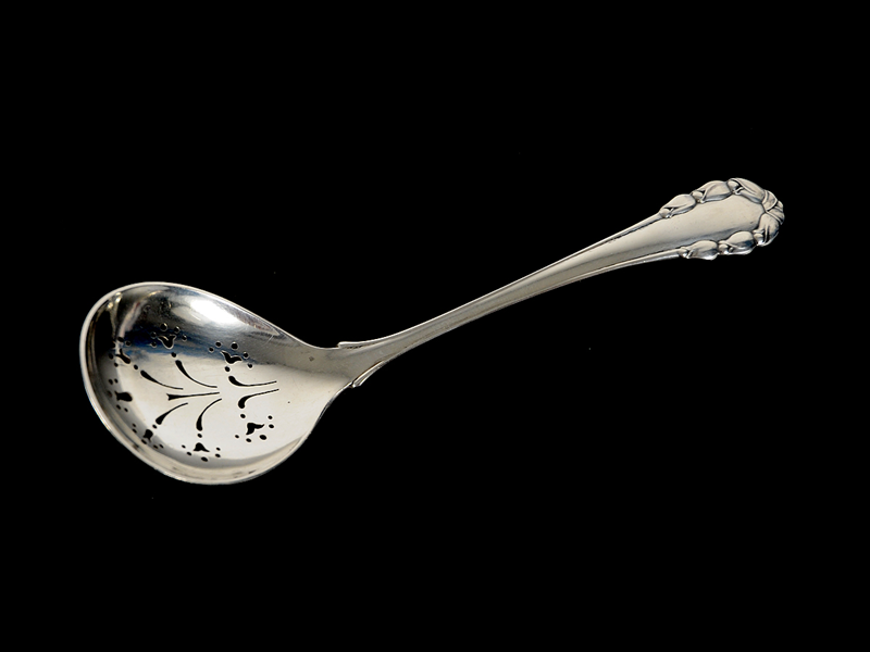 GEORG JENSEN, sifter, silver, model Liljekonvalj, marked Georg Jensen, Swedish hallmarks, length 17,2 cm, weight 52,4 g.
