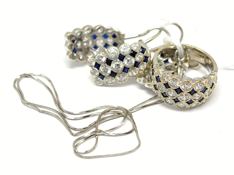 Smyckesett, Ring Ø18 Pendant Earrings 1par Necklace defect 40cm white gold with stones 18K 27,6g
