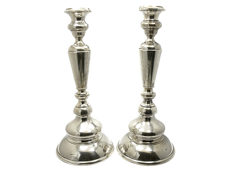 CANDLESTICKS, one pair, silver, on round välvd stand, balusterformade, Österrike-Ungern, Prag 1872-1922, height 34 cm, weight 654,3 g.