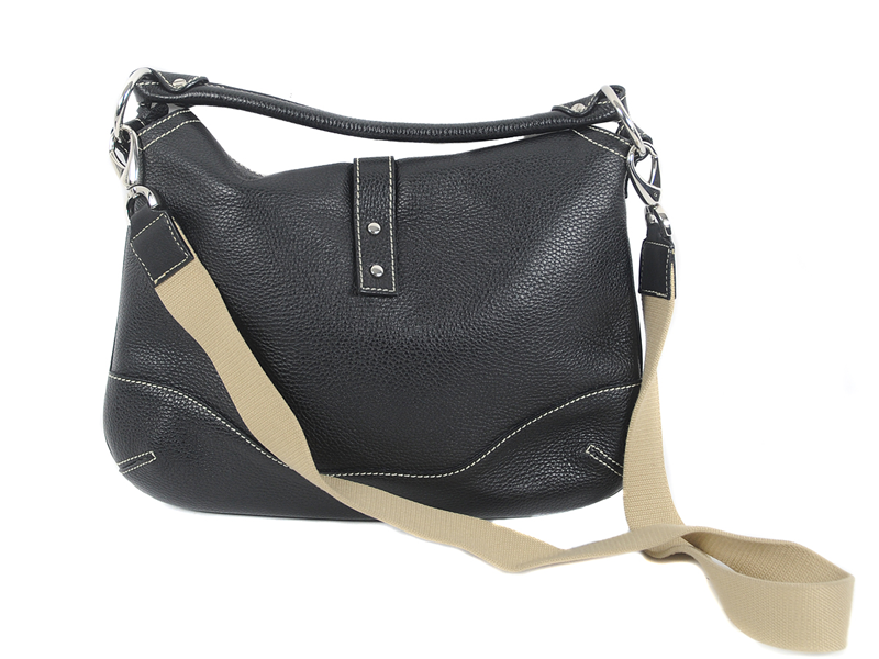 BAG, XXI SECOLO, black leather with beiga stickningar, brown lining fabric, 37x28 cm,avtagbar shoulder strap, with accessories small väska/necessär, dustbag.