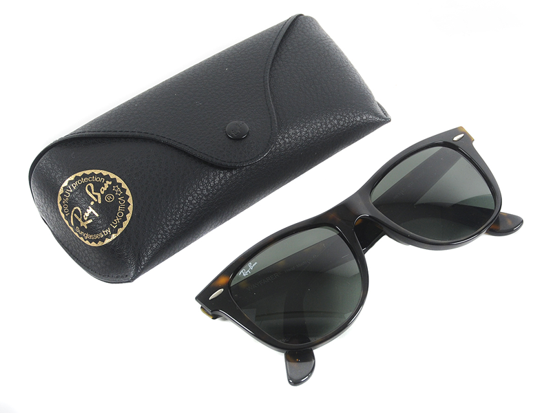 SUNGLASSES, RAY-BAN, Wayfarer, RB2140, brown frames, cleaning cloth, cover.