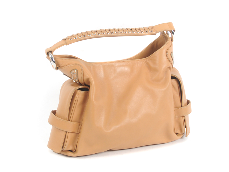BAG, VERSACE, beige leather, white metal details, 30x25x8 cm, dustbag.