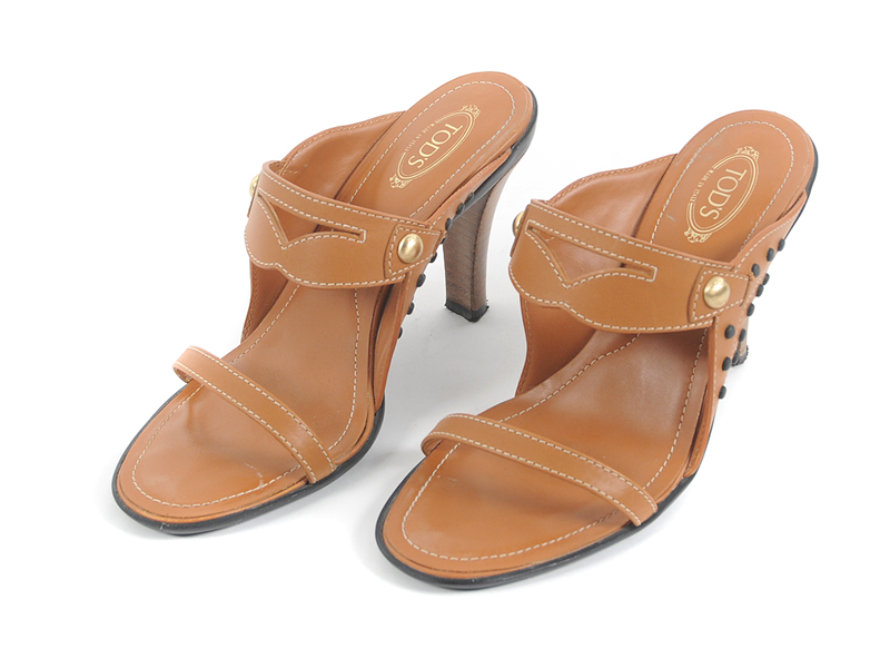 SANDALETTE, TOD´S, medium brown leather, rubber sole, heel 9 cm, size 37 1/2, sopåse.