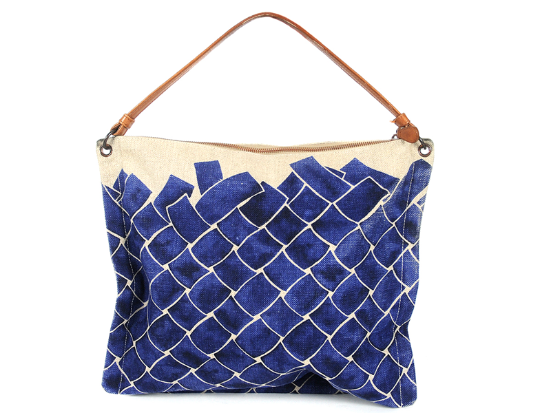 BAG, BOTTEGA VENETA, blue, beige linnetyg, brown läderdetaljer, 34x30 cm, dustbag.