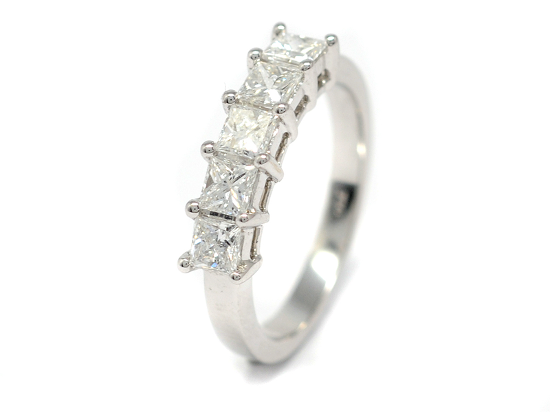 5-STENSRING, 18K white gold, 5 princess cut diamonds approx 1,00 ctw, approx TW-W(F-H)/VS-SI, size 17 mm, weight 4,2 g.