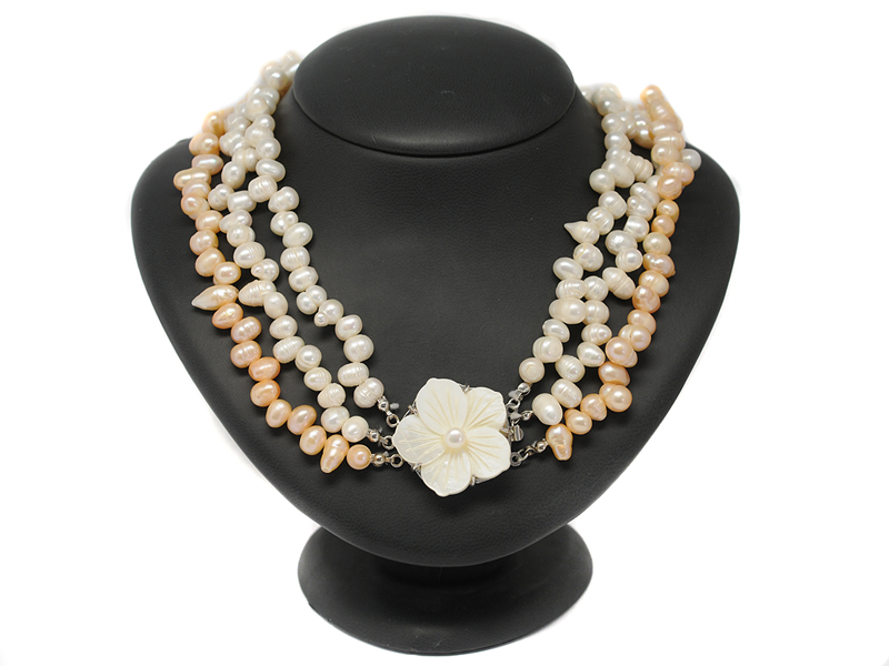 PEARL NECKLACE, cultured freshwater pearls, 3-row, length 50 cm, clasp white metal.