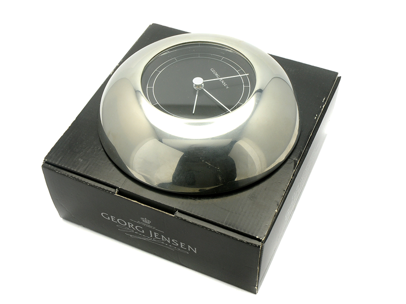 GEORG JENSEN, Denmark, designed by Andreas Mikkelsen, Ref no. 3587540, wall clock, 140 mm, steel, quartz, approx 2000, paper box.
