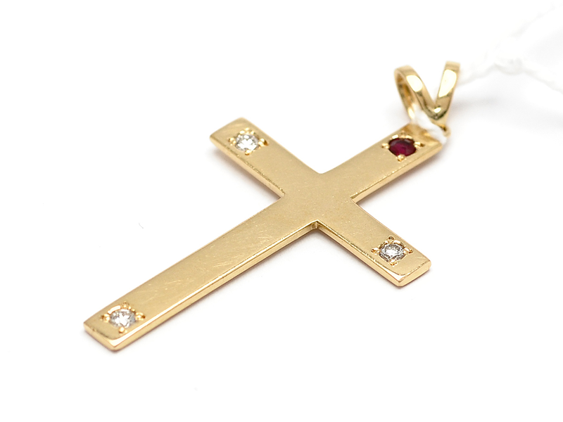 Pendant Cross with stone and diamonds 3xca0,04ct 18K 3,4g