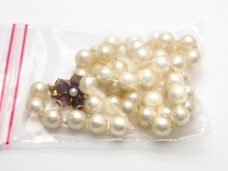 Pearl necklace with clasp in 18K with stones, pearls with skönhetsfel gross weight: 36,1g