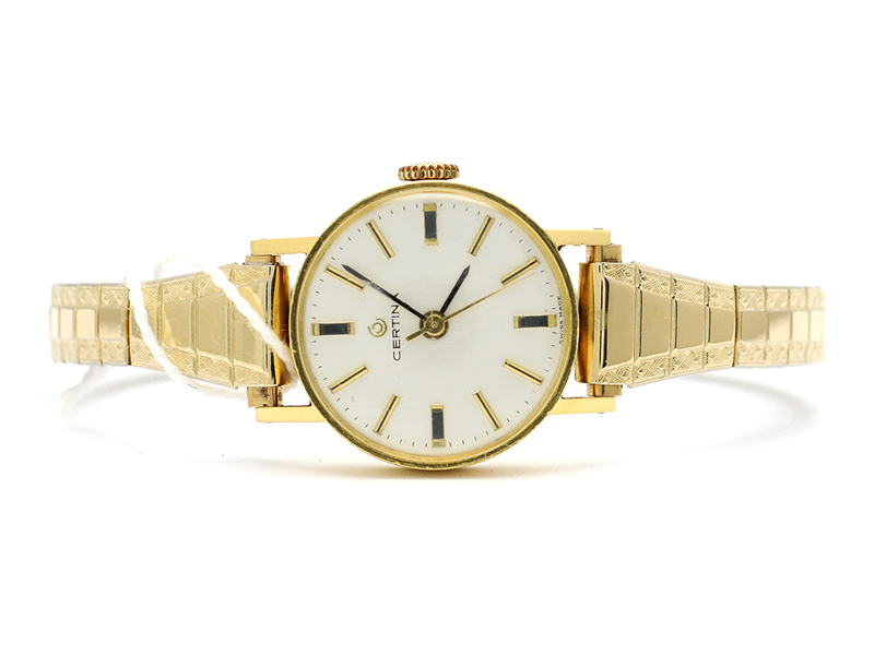Ladie´s wristwatch Certina 18K, manual winding, engraved, plastic glass, flexarmband