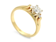RING, 14K gold, brilliant cut diamond approx 0,48 ct, approx CR/SI, 2 brilliant cut diamonds approx 0,08 ctw, approx CR/VS, size 16,5 mm, weight 4,1 g.