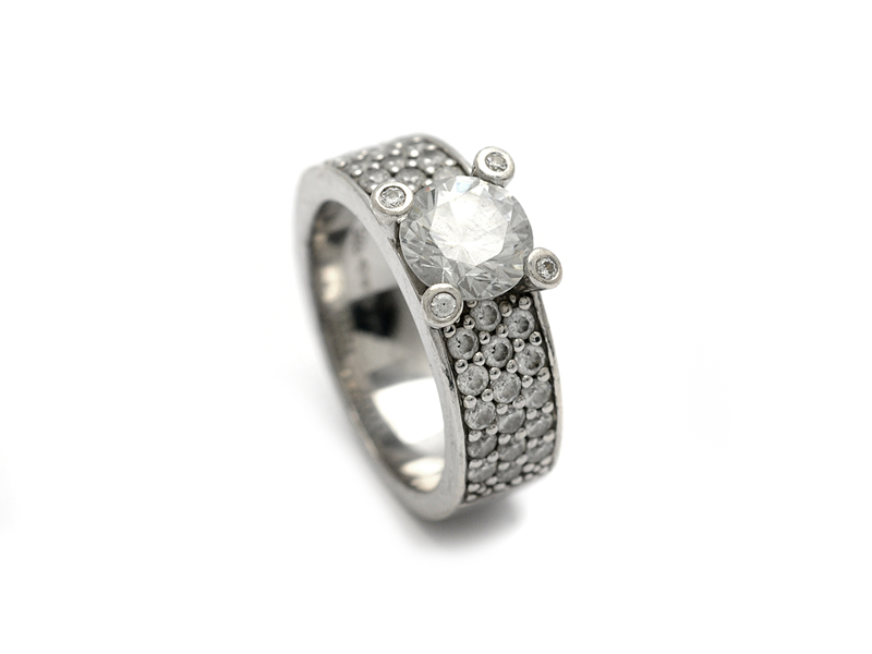 RING, TI SENTO, sterling silver with white stones, size 18,25, smyckespåse and case.