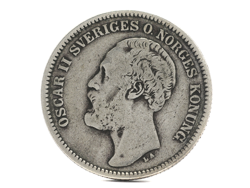 COIN, silver, 2 Kronor, 1877, Oscar II, quality approx 1, diameter 31 mm, weight 14,7 g.